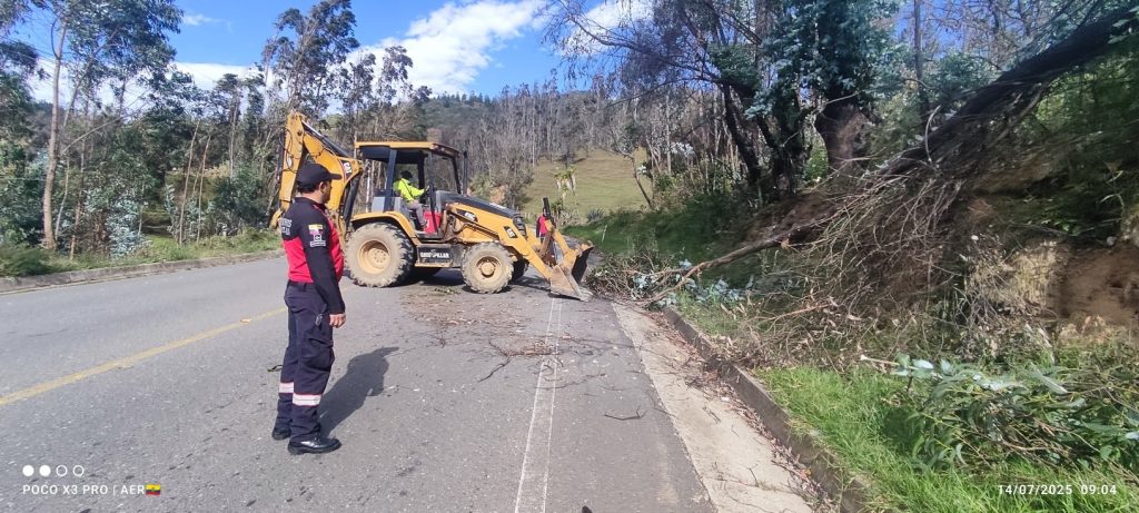 3) Mediante llamada a la base de la Estación de Bomberos Gonzanamá, se acude en el sector de Sunamanga, por caída de un árbol, se realiza el corte y se recibe apoyo de una retroexcavadora para retirarlo.