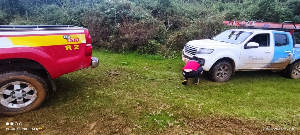 Mediante llamada a la base del BCBCG de alertante de la empresa Velocity, se solicita apoyo por encunetamiento de su vehículo en el barrio Lapanuma de la parroquia Changaimina, se acude en vehículo R-2 con 2 bomberos, se realiza el rescate vehicular.